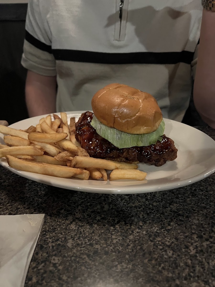 Great service, food and prices. Very friendly staff. Good variety of food. We had the burger with fries and grilled chicken (with teriyaki sauce) and 2-dudes (broccoli and baked potato). Highly recommend - very family friendly.